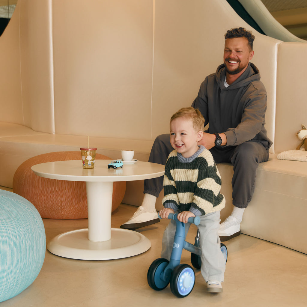 First Balance Bike for Toddlers | LED Wheels | Adjustable Seat | Stable 4-Wheel Design