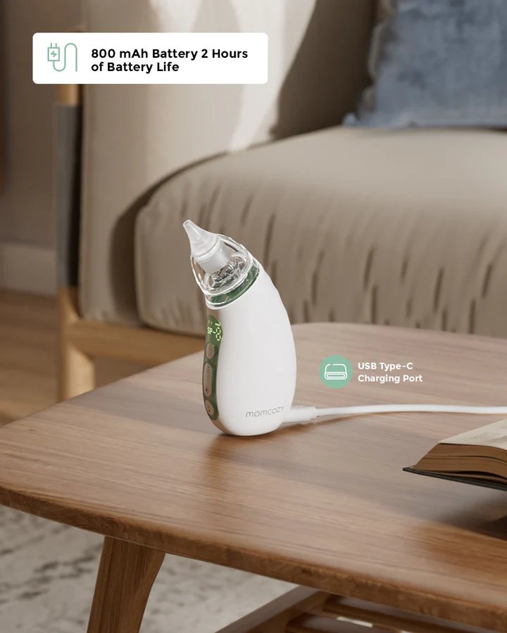 Keep your baby breathing easily with the Momcozy Baby Nasal Aspirator — a rechargeable, portable nasal suction device engineered for everyday congestion relief. With strong suction power, adjustable suction levels, and gentle BPA-free silicone tips, it clears both thick and runny mucus quickly and comfortably. Whether at home or on the go, this nasal aspirator gives parents a safer, easier way to help little noses breathe clearer.