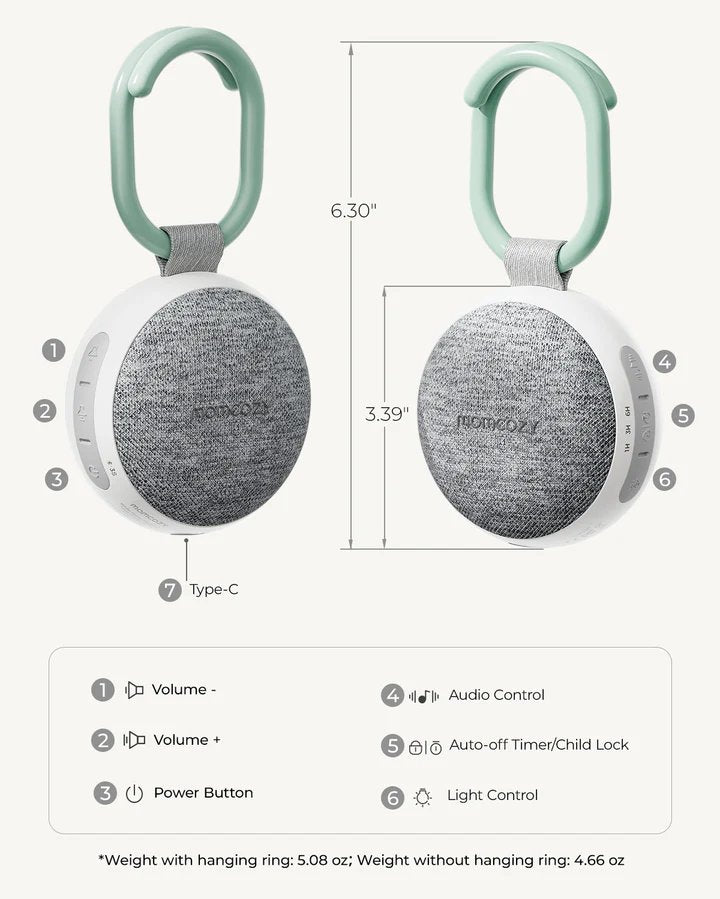Help your baby (and the whole family) sleep soundly with the Momcozy Portable Sound Machine — a compact, travel-ready white noise device designed to create peaceful sleep environments at home or on the go. This versatile sound machine blends soothing sounds, a gentle night light, and long battery life into one stylish, easy-to-use sleep solution.