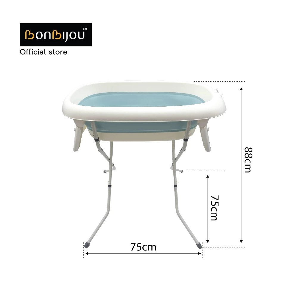 Bonbijou EasyFold Baby Bath Tub & Stand is a foldable and portable bathing system suitable for newborns up to toddlers. The bathtub features a spacious design with soft edges to ensure your baby's comfort during bath time. The accompanying stand elevates the tub to a comfortable height, reducing the need for bending and making it easier for parents to bathe their child. When not in use, both the tub and stand can be folded compactly for easy storage, making it ideal for homes with limited space.